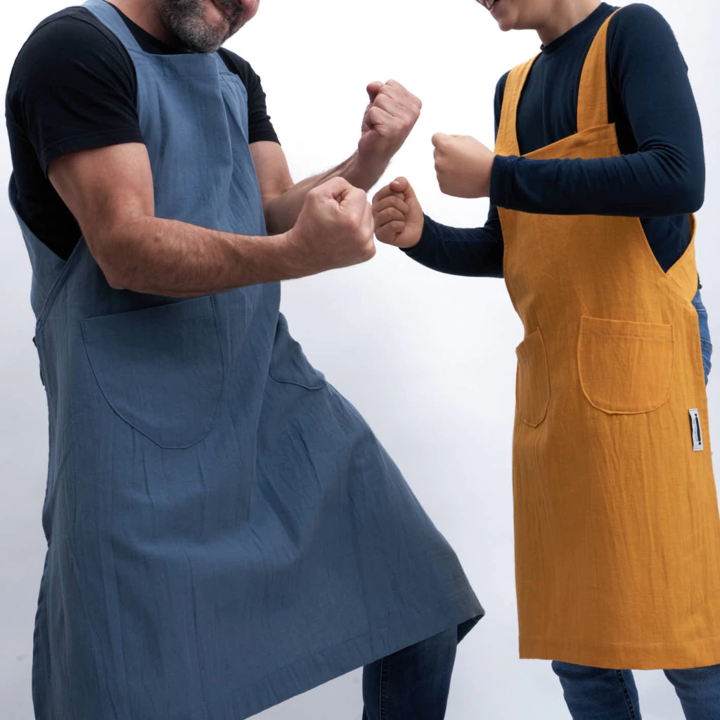 Delantal tipo Japonés - Azul Aero. Para adulto confeccionado en tusor liso 100% algodón.